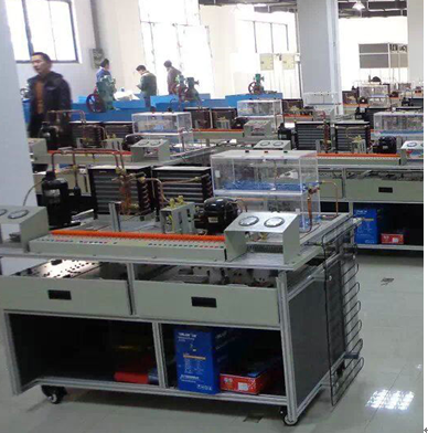 現(xiàn)代制冷與空調(diào)系統(tǒng)技能實訓(xùn)裝置是專門為職業(yè)院校制冷類專業(yè)而研制的,根據(jù)制冷制熱類行業(yè)中空調(diào)與冰箱維修技術(shù)的特點,針對空調(diào)和冰箱的電氣控制以及制冷系統(tǒng)、電氣控制系統(tǒng)、系統(tǒng)調(diào)試、故障診斷等特點進行設(shè)計。強化了學(xué)生對空調(diào)冰箱系統(tǒng)管路的安裝與維修系統(tǒng)調(diào)試等的等的綜合職業(yè)能力。本裝置由空調(diào)系統(tǒng)模塊,冰箱系統(tǒng)模塊,電源及儀表模塊,空調(diào)電氣控制模塊,冰箱電子溫控電氣控制模塊,冰箱智能溫控電氣控制模塊等組成。通過設(shè)備進行項目訓(xùn)練,能提高學(xué)生的動手操作能力,計劃組織能力,制冷系統(tǒng)的調(diào)試安裝能力,電氣控制電路維修能力等是現(xiàn)代制冷制熱技能實訓(xùn)的必要工具。