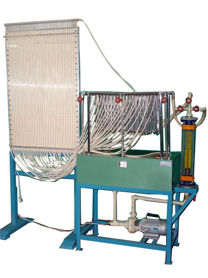 防腐水泵, PVC 水箱,水位計(jì),分配聯(lián)箱、匯集聯(lián)箱,蛇形管, 40 根測壓管, 40 根玻璃差壓板,可調(diào)節(jié)閥門組,不銹鋼支架等。