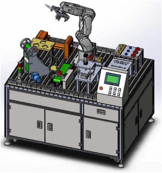 ( 2 ) . 此基礎(chǔ)平臺主要完成以下工作:來料、輸送、碼垛、分揀、裝配、檢測等,并搭載了 TCP 校點模塊、焊接 ( 涂膠 ) 軌跡模擬模塊。
