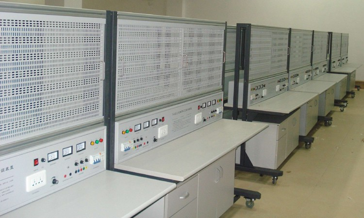 2、實(shí)訓(xùn)桌桌面采用25mm麻灰色高密度層壓板封邊特制,有效提高絕緣等級(jí);實(shí)驗(yàn)桌底部裝有至少4個(gè)導(dǎo)向輪,方便實(shí)訓(xùn)臺(tái)架移動(dòng);