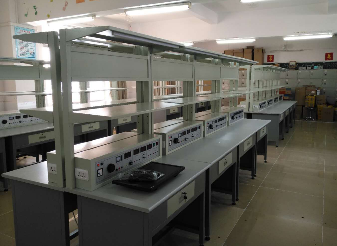 4. 尺寸為: 1000 × 700 × 1800mm ;臺(tái)面高 750mm ;掛板高 1050mm ;帶抽屜,整體為鋼木結(jié)構(gòu);前端有寬為 300mm 的層板,用于放示波器或函數(shù)發(fā)生器等常用工具;臺(tái)面配備防燙絕緣膠皮;臺(tái)子自帶電源部分包括:?jiǎn)蜗?220V 交流市電,由插座輸出,可供外接儀器備用。實(shí)訓(xùn)臺(tái)頂端自帶 LED 日光燈;用于照明;