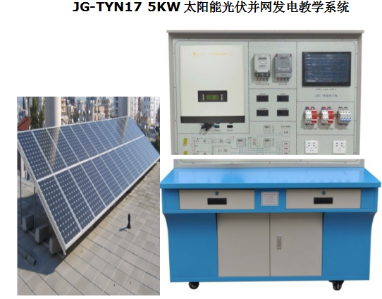 教學(xué)設(shè)備公司>專業(yè)系列新能源教學(xué)設(shè)備>>>>JG-TYN17 5KW太陽能光伏并網(wǎng)發(fā)電教學(xué)系統(tǒng)