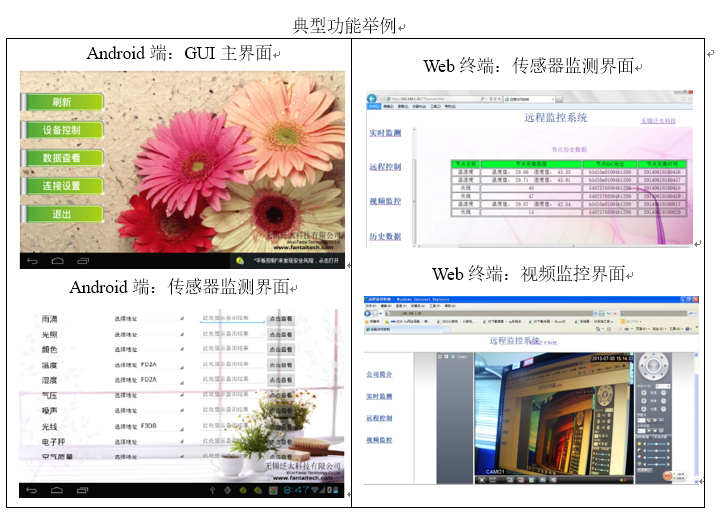 B/S架構下支持基于云服務平臺的Android智能家居感知層管理軟件、基于云服務平臺的Android智能家居監(jiān)控終端軟件以及Web智能家居監(jiān)控終端軟件。
