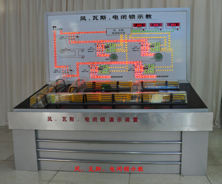 該風(fēng)電、瓦斯閉鎖示教盤采用聲、光、電直觀顯示電路,風(fēng)路流程原理,自動(dòng)模擬瓦斯檢測(cè),通風(fēng)系統(tǒng),煤電站工作原理及各種電器設(shè)備,模擬風(fēng)電、瓦斯電閉鎖系統(tǒng)及閉鎖關(guān)系,實(shí)現(xiàn)1.0%報(bào)警,1.5%斷電的光電演示。