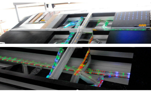 (4)監(jiān)測監(jiān)控部分:多媒體可視化系統(tǒng)?娠@示主要工作點、轉(zhuǎn)載點的工作狀況,模擬生產(chǎn)指揮中心監(jiān)測監(jiān)控。