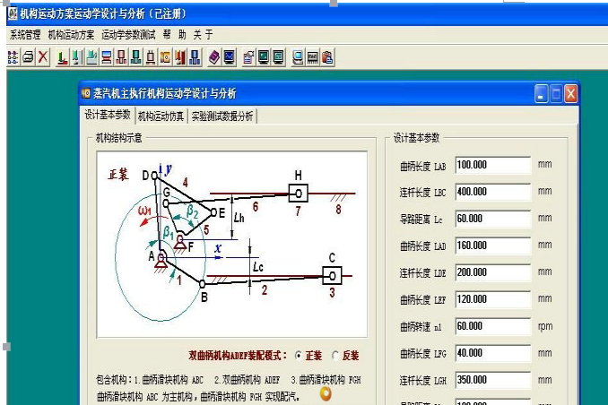 2. 軟件界面上可進(jìn)行機(jī)構(gòu)參數(shù)虛擬設(shè)計、理論仿真、理論相關(guān)參數(shù)設(shè)計與力學(xué)分析;