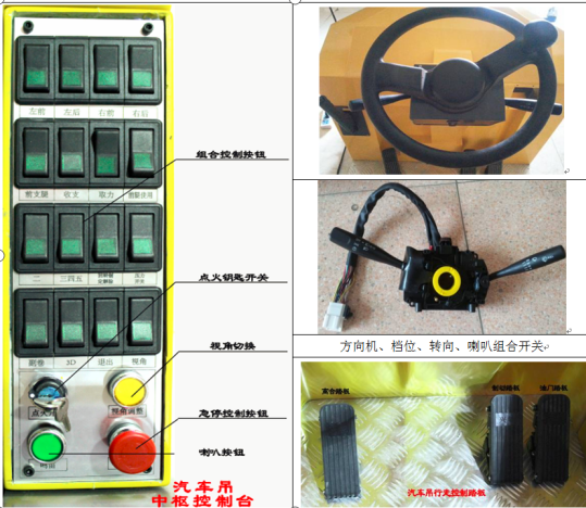 3)具備汽車起重機(jī)油門、離合、剎車、方向總成等駕駛操作模塊;
