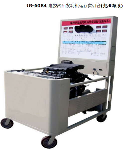 電控汽油發(fā)動機運行實訓臺(起亞車系)采用電控汽油發(fā)動機總成及運行附件的固定臺架和運行檢測控制面板臺架兩部分組成。
