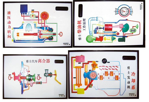 汽車程控電教板包括:桑塔納2000型電動(dòng)程控電教板,桑塔納全電動(dòng)程序控制電教板,東風(fēng)EQ1090、解放CA1091汽車程控電教板ABS制動(dòng)系、自動(dòng)變速器電動(dòng)程控示教板,上海大眾帕薩特、桑塔納程控電教板等產(chǎn)品。汽車電教板采用鋁合金框架,表面采用彩色有機(jī)玻璃壓模成型,線路流向燈光演示,程控教鞭控制,轉(zhuǎn)動(dòng)式字幕顯示。特點(diǎn):1、電動(dòng)程序控制電路;2、每塊電教板的板面一側(cè)都有屏幕顯示;3、板面機(jī)械部分采用半立體彩色有機(jī)玻璃用模具一次成型鑄成;4、可自動(dòng)控制每塊電教板工作原理的演示,彩燈逐點(diǎn)閃爍顯示各系統(tǒng)的油路、電路、水路、氣壓等工作原理,可快慢調(diào)節(jié),演示時(shí)機(jī)械部分、燈光部分、儀表部分都同步工作。