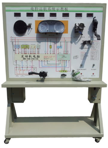 操縱油門踏板位置傳感器可實(shí)現(xiàn)節(jié)氣門開度的調(diào),可真實(shí)展示電子節(jié)氣門的工作原理和工作過程;操縱巡航控制開關(guān)和車速信號,設(shè)定巡航狀態(tài),引擎控制單元可對節(jié)氣門開度進(jìn)行調(diào)節(jié),真實(shí)演示汽車電子巡航系統(tǒng)的工作過程和工作原理。