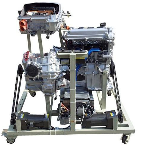 豐田普銳斯混聯(lián)式混合動(dòng)力系統(tǒng)(包括:發(fā)動(dòng)機(jī)、發(fā)電機(jī)和電動(dòng)機(jī)等)總成,三相齒輪減速感應(yīng)電機(jī),三相漏電保護(hù)開關(guān),移動(dòng)臺(tái)架(帶自鎖腳輪裝置).