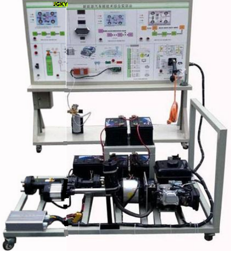 發(fā)電機(jī)、發(fā)動(dòng)機(jī)、燃料電池及運(yùn)行附件、電池組、逆變器、三相交流電機(jī)、傳動(dòng)機(jī)構(gòu)、制動(dòng)機(jī)構(gòu)、故障模擬與考核裝置、檢測(cè)面板與可移動(dòng)臺(tái)架等組成。