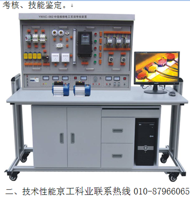 中級(jí)維修電工考核裝置 采用國(guó)際常用的模塊化設(shè)計(jì),根據(jù)不同的實(shí)訓(xùn)考核內(nèi)容配置相應(yīng)的實(shí)訓(xùn)模塊,實(shí)訓(xùn)方便、布局合理、易于擴(kuò)展升級(jí),中級(jí)維修電工考核裝置實(shí)訓(xùn)內(nèi)容涵蓋電工儀表、電工接線工藝、電子電路、電工照明配電、電力拖動(dòng)、 PLC 綜合訓(xùn)練、觸電急救、安全消防等,符合初、中級(jí)電工國(guó)家職業(yè)標(biāo)準(zhǔn)教、培、考的要求, 高級(jí) 維修電工實(shí)訓(xùn)考核裝置 適應(yīng)各職業(yè)學(xué)校、技工學(xué)校、中專(zhuān)學(xué)校、勞動(dòng)培訓(xùn)及技能鑒定機(jī)構(gòu)等單位的教學(xué)培訓(xùn)、實(shí)訓(xùn)
