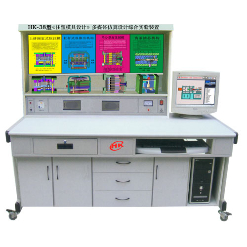 《塑料模具設(shè)計(jì)與制造》多媒體仿真設(shè)計(jì)綜合實(shí)驗(yàn)裝置 一、概述 適用于《塑料模具設(shè)計(jì)與制造》、《注塑模具》等課程。本實(shí)驗(yàn)臺(tái)以教育部高教司《關(guān)于加強(qiáng)高職高專(zhuān)人才培養(yǎng)工作的若干意見(jiàn)》等文件對(duì)高職高專(zhuān)人才培養(yǎng)的要求為指導(dǎo)思想,按專(zhuān)業(yè)服從市場(chǎng),課程服務(wù)于專(zhuān)業(yè)的原則,積極進(jìn)行課程教學(xué)改革。以培養(yǎng)學(xué)生從事塑料模具設(shè)計(jì)與制造工作能力為核心,采用多種素材和媒體手段,重點(diǎn)講述注射模、壓縮模、壓注模、擠出機(jī)頭設(shè)計(jì)及制造,熱流道模具等先進(jìn)模具技術(shù)。實(shí)驗(yàn)裝置采用塑料模具設(shè)計(jì)多媒體軟件用電腦動(dòng)畫(huà)語(yǔ)音演示模具功能和原理,同時(shí)配合實(shí)物模具模型;多媒體軟件包含38件模具動(dòng)畫(huà)內(nèi)容;實(shí)驗(yàn)裝置采用30件模型和38塊說(shuō)明模塊板供學(xué)生使用;模型和模塊板可隨課程內(nèi)容需要進(jìn)行更換操作。 二、產(chǎn)品特點(diǎn) 1、實(shí)驗(yàn)臺(tái)采用P4電腦主機(jī)一臺(tái)、22寸顯示器一臺(tái)、鼠標(biāo)、鍵盤(pán)各一個(gè)。 2、利用多媒體軟件界面,用二/三維動(dòng)畫(huà)生動(dòng)演示各種模具結(jié)構(gòu)功能和原理(開(kāi)模、閉模、出制件)的全過(guò)程、并且采用語(yǔ)音講解各種模具功能和原理,使學(xué)生實(shí)現(xiàn)理論與實(shí)際的緊密結(jié)合。 3、利用模塊板文字圖表說(shuō)明文件,指導(dǎo)學(xué)生獨(dú)立分析模具結(jié)構(gòu)和運(yùn)動(dòng)方式,培養(yǎng)看圖識(shí)圖分析能力。 4、利用實(shí)物模具模型讓學(xué)生深入了解模具組成和結(jié)構(gòu)原理,增加學(xué)生設(shè)計(jì)與分析課程內(nèi)容,培養(yǎng)學(xué)生的創(chuàng)新意識(shí)。 5、實(shí)驗(yàn)裝置采用30件塑料模具模型和38塊文字圖表板,分別介紹各種塑料模具的功能和結(jié)構(gòu)及用途和作用。 6、本裝置采用組件式結(jié)構(gòu),更換文字圖表板和模具模型便捷,如需擴(kuò)展功能或開(kāi)發(fā)新實(shí)驗(yàn),只需添加文字圖表板和模型即可。 四、主要技術(shù)參數(shù) 1、工作電源:?jiǎn)蜗?20V交流電源。 2、結(jié)構(gòu):實(shí)驗(yàn)臺(tái)為鐵質(zhì)鈑金噴塑結(jié)構(gòu),堅(jiān)固耐用。 3、工作環(huán)境:溫度-100-+400C。 4、整機(jī)功耗:<0.5KW 5、實(shí)驗(yàn)臺(tái)外形尺寸:1600×750×1750mm