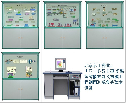 本套采用 121 件動畫圖象配合陳列柜上的內(nèi)容在電腦上演示各種模型特點(diǎn),如制圖工具的使用、投影產(chǎn)生過程、投影作圖步驟、裝配功能等、生動形象。 |