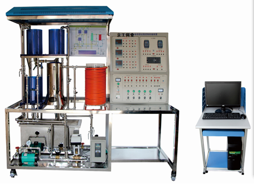 , , 過程控制包括一組有機(jī)玻璃三(兩)容水箱,每個(gè)水箱裝有液位傳感變送器;同時(shí)具有兩路供水系統(tǒng),一路由進(jìn)口動(dòng)力水泵、調(diào)節(jié)閥、電磁流量計(jì)組成,另一路由變頻器、進(jìn)口動(dòng)力水泵、渦輪流量計(jì)組成,通過閥門切換,任何一組供水可以到達(dá)任何一個(gè)水箱。另外,為實(shí)現(xiàn)溫度控制,該實(shí)驗(yàn)裝置專門設(shè)計(jì)了一只由帶夾套鍋爐、防干燒裝置組成的常壓電加熱鍋爐。鍋爐分內(nèi)膽和夾套兩層,內(nèi)膽由電加熱器提供熱源,由一路供水系統(tǒng)提供水源,鍋爐內(nèi)膽裝有防干燒裝置來確保設(shè)備安全;夾套由一路供水系統(tǒng)提供冷卻水。通過改變電加熱器的加熱功率或冷卻水 / 待加熱水的流量來影響內(nèi)膽水溫和夾套水溫。鍋爐內(nèi)膽和夾套均安裝有熱電阻測(cè)溫元件。