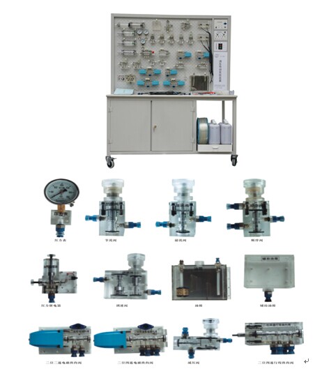 YY-18F 型“四合一”透明液壓傳動演示系統(tǒng),在增加與保證實驗項目及功能的前提下 , 根據在同一課時做不同演示實驗的原則,有效利用透明液壓元件進行優(yōu)化組合,使產品的性價下降 40% 。同時增加了新的液壓元件:雙作用式葉片泵,擺線式轉子泵,先導式溢流閥, Y 型三位四通電磁換向閥, 實心雙出桿油缸,空心雙出桿油缸,油盤 。