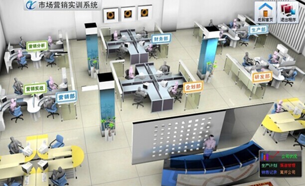 進(jìn)行營(yíng)銷(xiāo)分析后學(xué)生注冊(cè)不同的公司,公司含有五個(gè)部門(mén):營(yíng)銷(xiāo)部(營(yíng)銷(xiāo)分析和營(yíng)銷(xiāo)實(shí)戰(zhàn))、生產(chǎn)部、研發(fā)部、企劃部、財(cái)務(wù)部等。學(xué)生在相同的市場(chǎng)環(huán)境下和同班學(xué)生展開(kāi)激烈的市場(chǎng)競(jìng)爭(zhēng),競(jìng)爭(zhēng)的結(jié)果由系統(tǒng)進(jìn)行統(tǒng)計(jì),學(xué)生可以實(shí)時(shí)查到自己模擬公司的市場(chǎng)占有率、營(yíng)業(yè)情況等。通過(guò)對(duì)虛擬消費(fèi)者偏好的模擬,模擬出企業(yè)與消費(fèi)者之間的博弈、企業(yè)與企業(yè)之間的博弈。