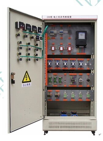 設(shè)備以標(biāo)準(zhǔn)的配電柜為主柜,利用柜體的雙面空間,科學(xué)地布置電器及配套實(shí)驗(yàn)器材。該柜設(shè)計(jì)合理,實(shí)操方便,一柜多用,所有電器元件接點(diǎn)都已接到接線端子上,學(xué)生只需在接線端子上接線實(shí)驗(yàn),延長了電器元件使用壽命、降低了材料損耗。