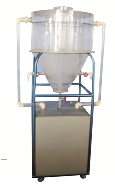 有機(jī)玻璃水力循環(huán)澄清池、 PVC 水箱、不銹鋼進(jìn)水泵、轉(zhuǎn)子流量計(jì)、中心導(dǎo)流調(diào)節(jié)器、進(jìn)水噴嘴、污泥導(dǎo)流器、污泥斗、排泥閥、出水平衡槽、不銹鋼臺(tái)架、排水管、 防污電器控制箱、 配套連接管閥。