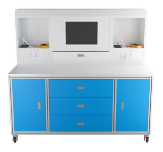 工作臺(tái): 桌身采用優(yōu)質(zhì)鋁型材做骨架,整機(jī)既堅(jiān)固耐用,美觀大方。桌面采用 25mm 厚高密度纖維板,外貼防火板, PVC 截面封邊,桌面具有耐磨、耐熱、耐污、耐火、耐菌、防霉、抗靜電及易清潔等特點(diǎn)。工作臺(tái)設(shè)有防靜電配套裝置,桌面上方有實(shí)訓(xùn)屏、高檔條形 LED 照明。工作臺(tái)下裝帶剎車的萬(wàn)向輪,可以隨意固定和移動(dòng),設(shè)計(jì)有抽屜,抽屜內(nèi)部使用分隔條分隔成各種大小不同空間,實(shí)訓(xùn)電路板、元器件、工具、耗材均可放在隔間內(nèi),拉開抽屜,各種電子元件分類整齊、一目了然。