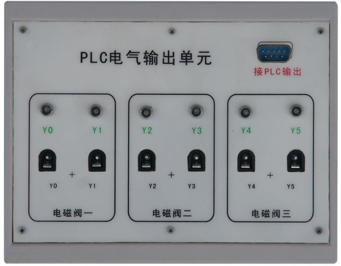 (4)輸入模塊:與PLC采用電纜9針232接口連接。連接后為PLC提供8路主令輸入信號(其中2路為常閉信號),及通過信號插孔為PLC提供自動控制信號。(如:行程開關(guān)位置信號等);輸出模塊:與PLC采用電纜9針232接口連接。通過輸出接口插孔控制電磁閥通斷;繼電器控制模塊:與電源模塊連接后,進行主令信號控制,及提供自動控制信號接口進行自動控制。通過輸出口插孔控制電磁閥通斷。
