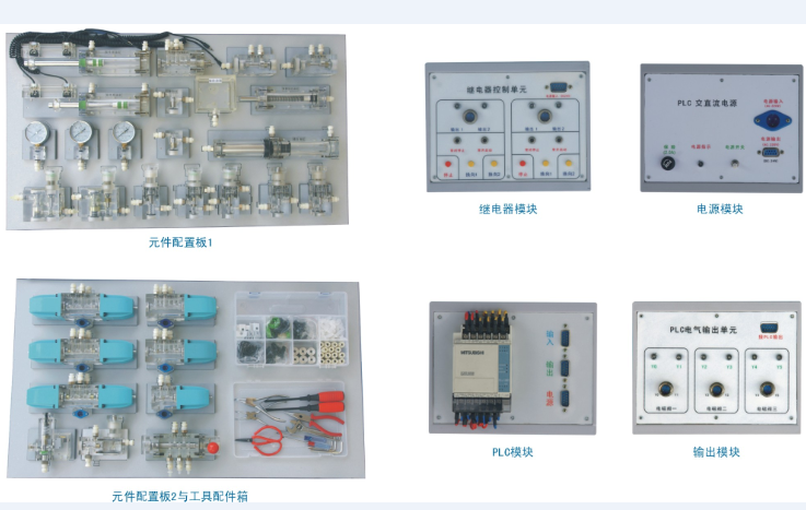液壓實驗元件1套,液壓實驗PLC電氣控制系統(tǒng)1套;液壓實驗繼電器控制模塊1套;液壓實驗泵站1臺。(計算機根據(jù)學校要求另行配置)。實驗臺設(shè)計有專用的原件配置板,每個元件都有一個固定的放置位置。有利于實驗器件的管理。配備了:雙作用油缸(帶行程撞塊)、彈簧回位油缸、液控單向閥,減壓閥,輔助油箱,壓力繼電器,增壓油缸,節(jié)流閥(直動式),單向閥,順序閥等常用的液壓元件。