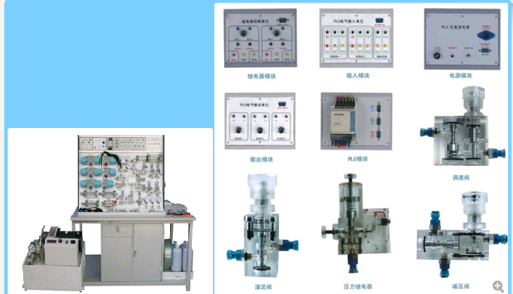 液實(shí)驗(yàn)元件均為透明有機(jī)材料制成,透明直觀。便于了解掌握幾十種常用液壓元件的結(jié)構(gòu)、性能及用途。掌握幾十種基本實(shí)驗(yàn)回路的工作過程及原理。實(shí)驗(yàn)時(shí),組裝實(shí)驗(yàn)回路快捷、方便。同時(shí),配備獨(dú)立的繼電器控制單元進(jìn)行電氣控制,簡(jiǎn)單實(shí)用。通過與PLC比較,可以加深對(duì)PLC可編程序控制器的了解及掌握。